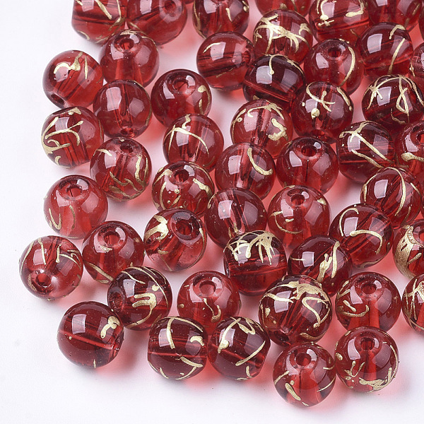 PandaHall Drawbench Transparent Glass Beads, Round, Spray Painted Style, Dark Red, 8mm, Hole: 1.5mm Glass Round Red Price: $3.6 | PandaHall
