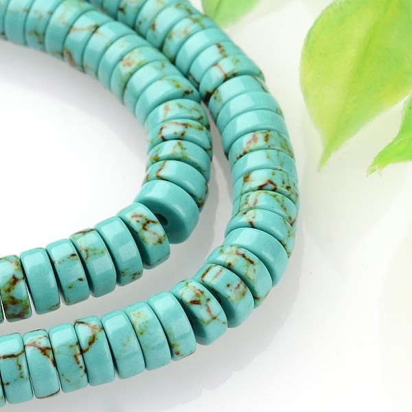 PandaHall Dyed Synthetic Turquoise Beads Strands, Heishi Beads, Flat Round/Disc, Turquoise, 3x8mm, Hole: 1mm, about 143pcs/strand, 15.7 inch... Price: $21.21 | PandaHall