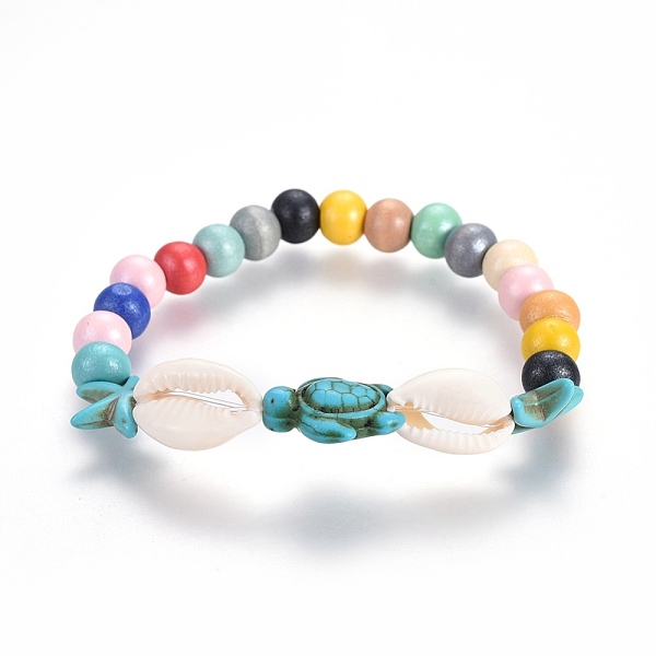 PandaHall Wood Beads Stretch Bracelets, with Synthetic Turquoise(Dyed) Beads and Shell Beads, Colorful, 2 inch(5.2cm) Wood Price: $8.7 | PandaHall