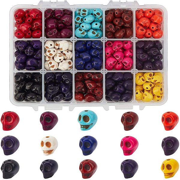 PandaHall AHANDMAKER 8mm Skull Beads, 300 Pcs 15 Colors Dyed Synthetic Turquoise Beads, Charms Skull Head Beads for Crafting, Jewelry Making... Price: $17.17 | PandaHall