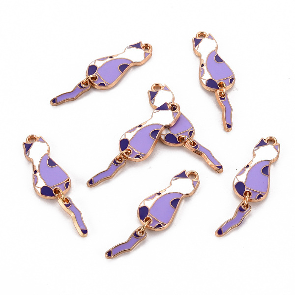 PandaHall Eco-Friendly Alloy Enamel Pendants, Cadmium Free & Lead Free & Nickel Free, Light Gold, Cat, Lilac, 35x10x1.5mm, Hole: 1.6mm... Price: $14.88 | PandaHall