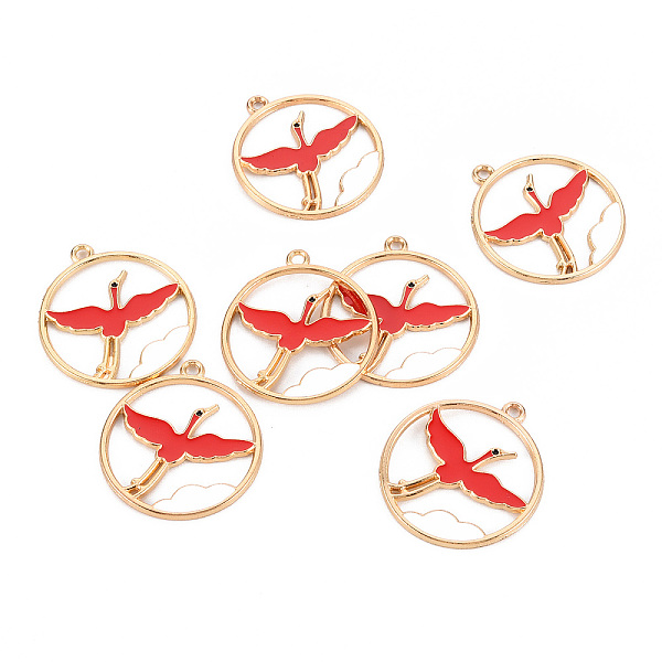 PandaHall Eco-Friendly Alloy Enamel Pendants, Cadmium Free & Lead Free & Nickel Free, Light Gold, Ring with Crane, Red, 29x26.5x1.5mm, Hole... Price: $13.05 | PandaHall