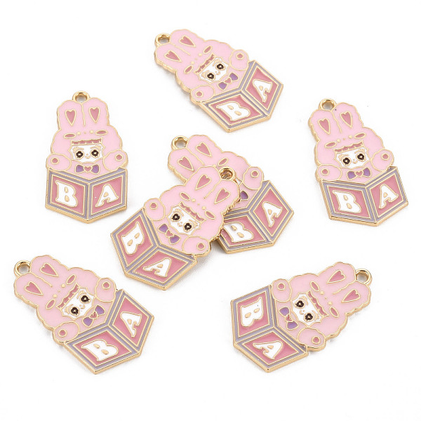 PandaHall Eco-Friendly Alloy Enamel Pendants, Cadmium Free & Lead Free & Nickel Free, Light Gold, Rabbit with Word BA, Pink, 32x17x1.5mm... Price: $16.32 | PandaHall
