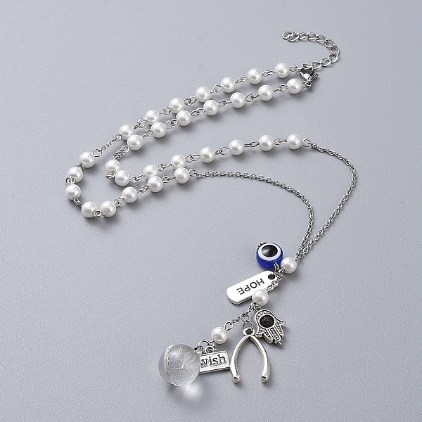 PandaHall Eco-Friendly Dyed Glass Pearl Pendant Necklace, with Tibetan Style Alloy/Glass/Stainless Steel Pendants and Resin Beads, Antique... Price: $28.17 | PandaHall