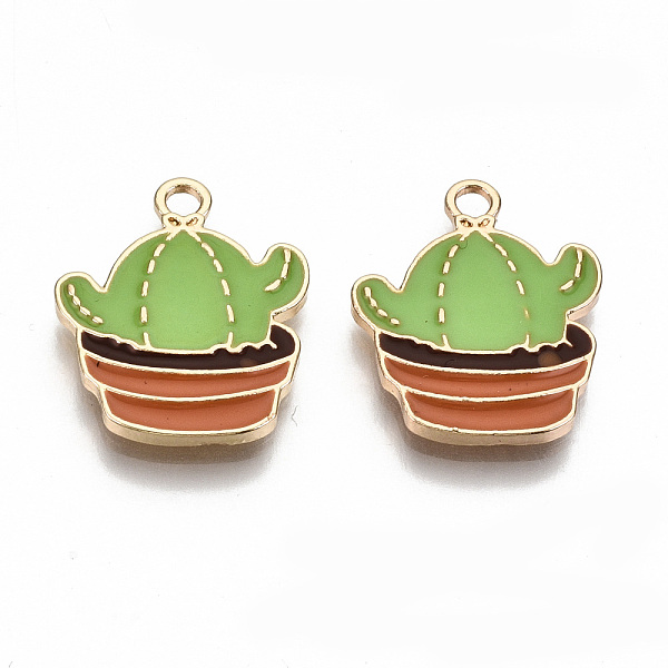 PandaHall Eco-Friendly Zinc Alloy Pendants, with Enamel, Cadmium Free & Nickel Free & Lead Free, Cactus Shape, Light Gold, Medium Sea Green... Price: $12.4 | PandaHall