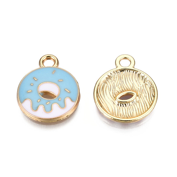 PandaHall Eco-Friendly Zinc Alloy Pendants, with Enamel, Donut, Cadmium Free & Nickel Free & Lead Free, Golden, Light Cyan, 18.5x14.5x2mm... Price: $13.05 | PandaHall