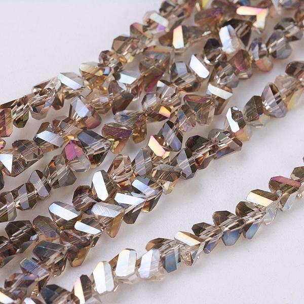 PandaHall Electroplate Glass Beads Strands, Triangle, Sandy Brown, 9x15.5~16x2.8~3mm, Hole: 1mm, about 119~131pcs/strand, 24.21''~24.41''... Price: $27.03 | PandaHall