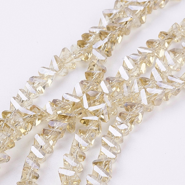 PandaHall Transparent Electroplate Glass Beads Strands, Rainbow Plated, Faceted, Triangle, Light Yellow, 7x5.5~6x5.5~6mm, Hole: 1.2mm, about... Price: $30.63 | PandaHall