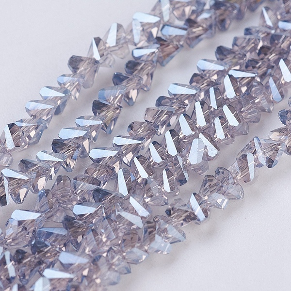 PandaHall Electroplate Glass Beads Strands, Faceted Triangle, Lilac, 6x5x4mm, Hole: 1.2mm, about 88~90pcs/strand, 28~30cm Glass Triangle... Price: $4.62 | PandaHall