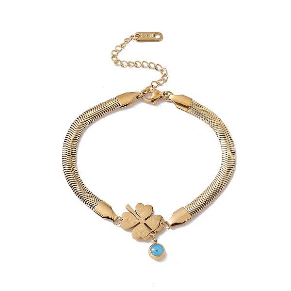 PandaHall Enamel Evil Eye Link Bracelet with Flat Snake Chains, 304 Stainless Steel Jewelry for Women, Golden, Clover Pattern, Clover... Price: $0 |