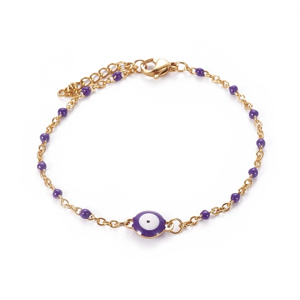 PandaHall 304 Stainless Steel Enamel Link Bracelets, with Cable Chain and Lobster Claw Clasps, Evil Eye, Golden, Purple, 6-3/4 inch~6-7/8... Price: $0 | PandaHall