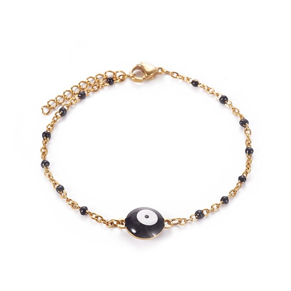 PandaHall 304 Stainless Steel Enamel Link Bracelets, with Cable Chain and Lobster Claw Clasps, Evil Eye, Golden, Black, 6-7/8 inch~7-1/8... Price: $0 | PandaHall