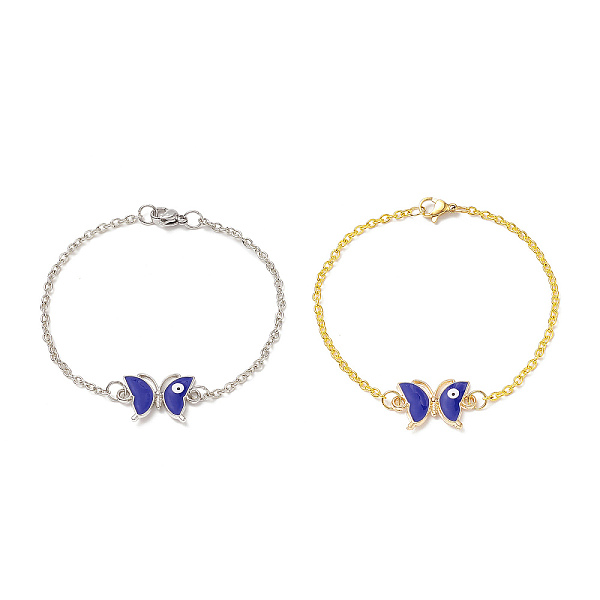 PandaHall 2Pcs 2 Color Alloy Butterfly with Evil Eye Link Bracelets Set wtih Enamel, Iron Jewelry for Women, Platinum & Golden, 7-3/8 inch... Price: $0 | PandaHall