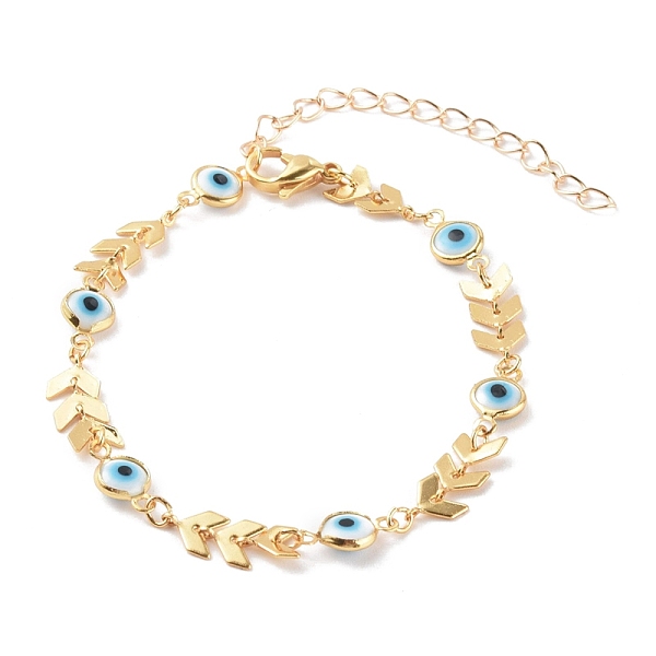 PandaHall Brass Enamel Evil Eye Link Bracelets, with 304 Stainless Steel Lobster Claw Clasps, Golden, Colorful, 6-7/8 inch(17.5cm) Brass... Price: $0 | PandaHall