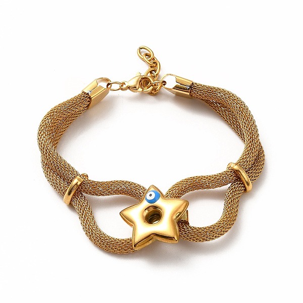 PandaHall Enamel Star with Evil Eye Link Bracelet, 304 Stainless Steel Round Mesh Chains Wrap Bracelet for Women, Golden, 6-1/8 inch(15.5cm)... Price: $0 | PandaHall