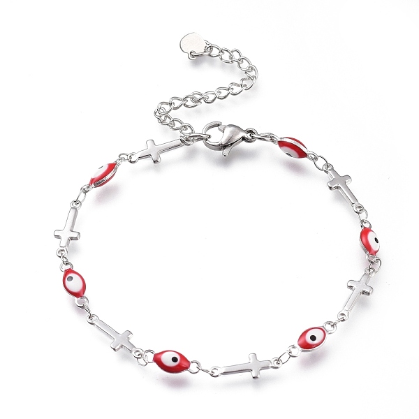 PandaHall 304 Stainless Steel Link Bracelets, with Enamel and Lobster Claw Clasps, Evil Eye & Cross, Stainless Steel Color, Red, 7-1/4 inch... Price: $0 | PandaHall
