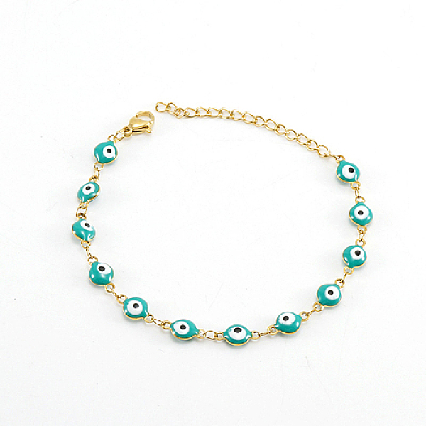 PandaHall Real 18K Gold Plated Stainless Steel Enamel Evil Eye Link Chain Bracelet, Turquoise, 6-3/4 inch(17cm) Stainless Steel Evil Eye... Price: $0 | PandaHall
