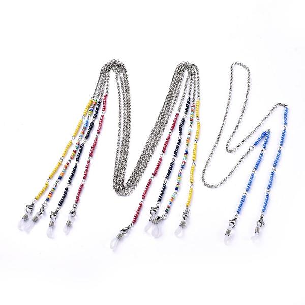 PandaHall Eyeglasses Chains, Neck Strap for Eyeglasses, with Glass Seed Beads, Brass Crimp Beads and Rubber Loop Ends, Colorful, 30.7 inch... Price: $2.1 | PandaHall