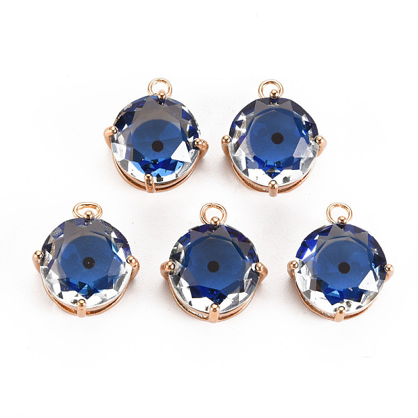 PandaHall Transparent Glass Pendants, with Brass Prong Settings, Faceted, Flat Round with Evil Eye, Light Gold, Blue, 17x13x6mm, Hole: 1.8mm... Price: $0 | PandaHall