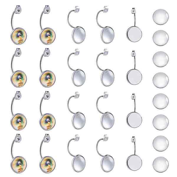 PandaHall Unicraftale 40Pcs 5 Styles Flat Round 304 Stainless Steel Earring Hooks Settings, with 40Pcs Transparent Glass Cabochons, for DIY... Price: $0 | PandaHall