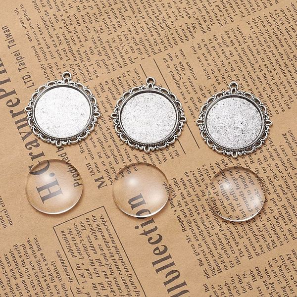 PandaHall DIY Pendant Making, Tibetan Style Alloy Pendant Cabochon Settings and Transparent Glass Cabochons, Flat Round, Antique Silver... Price: $0 | PandaHall