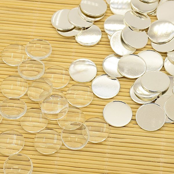 PandaHall Brass Cabochons Settings and Flat Round Transparent Clear Glass Cabochons, Cadmium Free & Lead Free, Silver, Tray: 18mm, Glass... Price: $0 | PandaHall