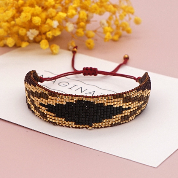 PandaHall Miyuki Seed Braided Bead Bracelet, Wide Band with Rhombus Pattern Friendship Bracelet for Women, Sandy Brown, 11 inch(28cm) Glass... Price: $8.05 | PandaHall