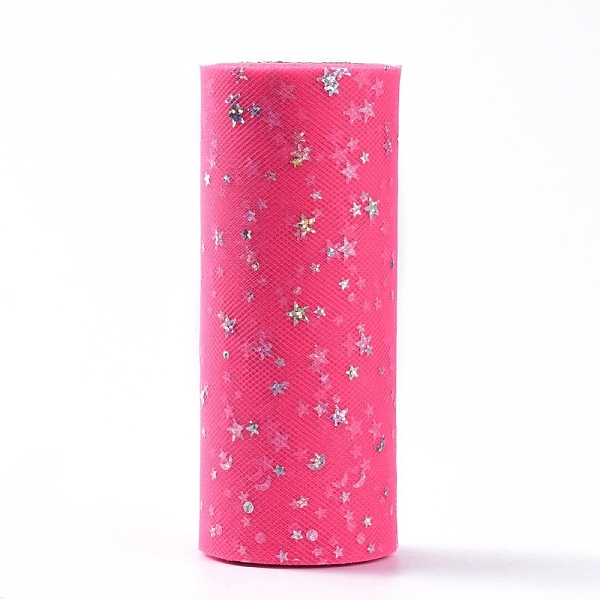 PandaHall Glitter Sequin Deco Mesh Ribbons, Tulle Fabric, Tulle Roll Spool Fabric For Skirt Making, Moon & Star Pattern, Hot Pink, 6 inch... Price: $12.61 | PandaHall