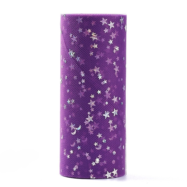 PandaHall Glitter Sequin Deco Mesh Ribbons, Tulle Fabric, Tulle Roll Spool Fabric For Skirt Making, Moon & Star Pattern, Medium Orchid, 6... Price: $12.61 | PandaHall