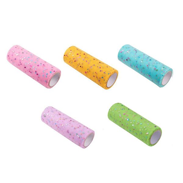 PandaHall Heart Glitter Sequin Deco Mesh Ribbons, Tulle Fabric, Tulle Roll Spool Fabric For Skirt Making, Mixed Color, 6 inch(15cm), about... Price: $13.74 | PandaHall