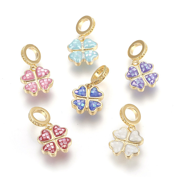 PandaHall Brass Enamel European Dangle Charms, Large Hole Pendants, with Freshwater Shell, Four Leaf Clover, Golden, Mixed Color, 20mm, Hole... Price: $11.1 | PandaHall