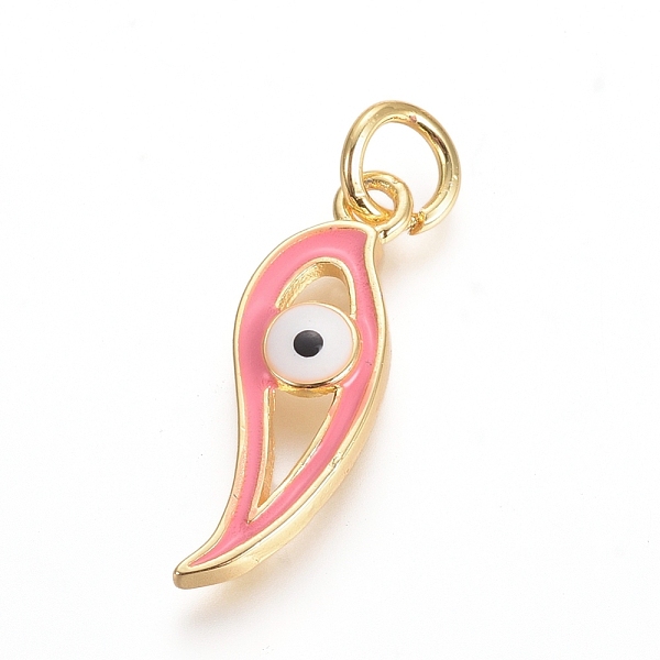 PandaHall Golden Plated Brass Pendants, with Enamel and Jump Rings, Long-Lasting Plated, Evil Eye, Pink, 22.5x7.5x2.5mm, Hole: 3.5mm... Price: $9.14 | PandaHall