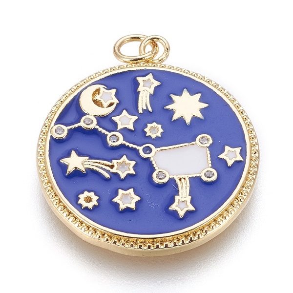 PandaHall Brass Cubic Zirconia Pendants, with Enamel, Flat Round with Dipper, Blue, Golden, 27.5x24x2mm, Hole: 3mm Brass+Cubic... Price: $7.02 | PandaHall