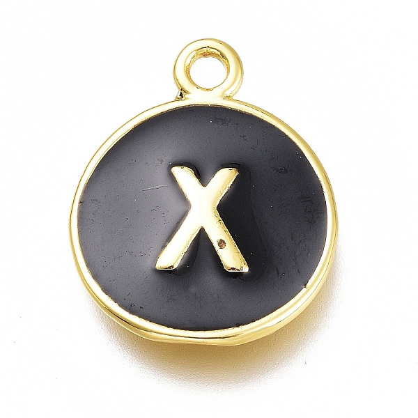 PandaHall Brass Enamel Pendants, Long-Lasting Plated, Black, Golden, Flat Round, Letter. X, 16.5x13x2mm, Hole: 1.5mm Brass+Enamel Letter X... Price: $5.87 | PandaHall