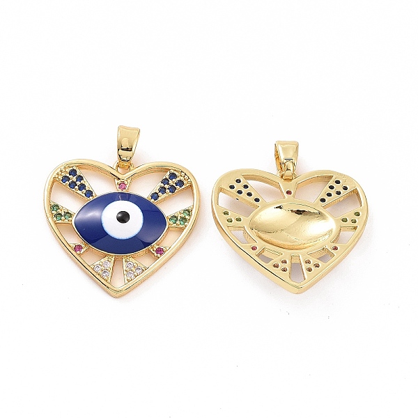 PandaHall Brass Enamel Pendants, with Cubic Zirconia, Evil Eye with Heart, Golden, Colorful, 21x31x3mm, Hole: 1mm Brass+Cubic... Price: $9.46 | PandaHall