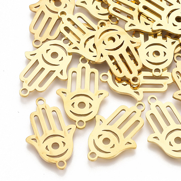 PandaHall 201 Stainless Steel Links connectors, Laser Cut Links, Hamsa Hand/Hand of Fatima/Hand of Miriam with Eye, Golden, 24x15x1mm, Hole... Price: $3.89 | PandaHall