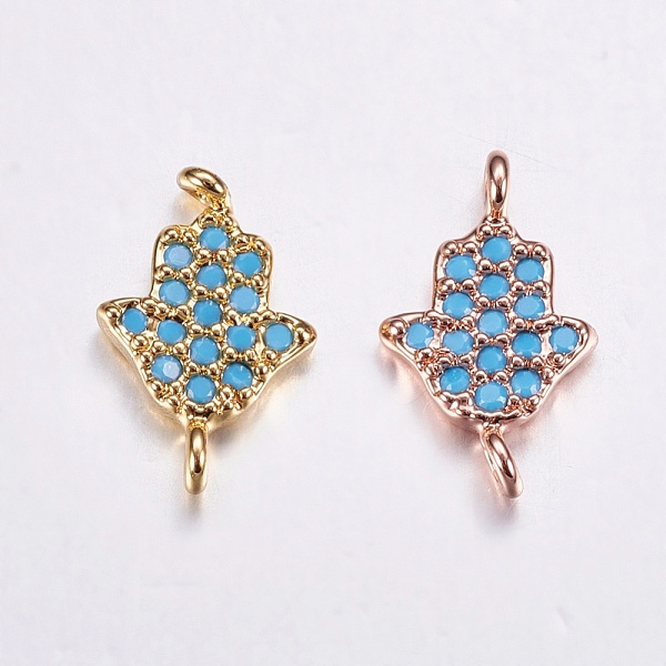 PandaHall Brass Micro Pave Cubic Zirconia Links, Long-Lasting Plated, Hamsa Hand/Hand of Fatima/Hand of Miriam, Deep Sky Blue, Mixed Color... Price: $11.35 | PandaHall