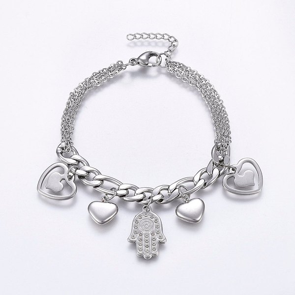 PandaHall 304 Stainless Steel Charm Bracelets, with Lobster Claw Clasps, Hamsa Hand/Hand of Miriam with Heart, Stainless Steel Color, 7-1/2... Price: $13.05 | PandaHall