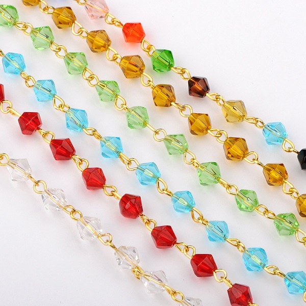 PandaHall Handmade Bicone Glass Beads Chains for Necklaces Bracelets Making, with Golden Iron Eye Pin, Unwelded, Mixed Color, 39.3 inch... Price: $10.2 | PandaHall