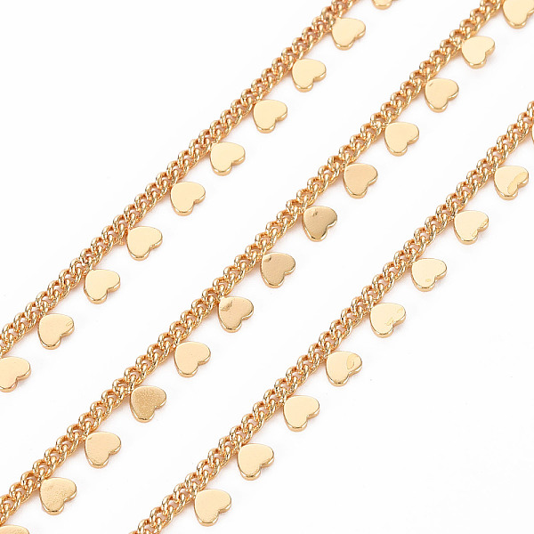 PandaHall Handmade Brass Curb Chains, with Heart Charms and Spool, Soldered, Long-Lasting Plated, Real 18K Gold Plated, Link: 3x2x1mm, Heart... Price: $28.78 | PandaHall