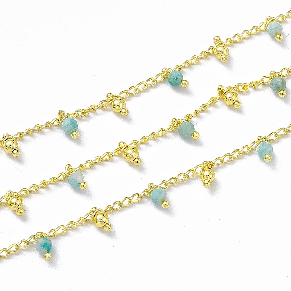 PandaHall Handmade Brass Curb Chains, with Natural Amazonite Round Beaded Charms, Soldered, with Spool, Real 18K Gold Plated, Link... Price: $48.95 | PandaHall