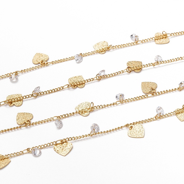 PandaHall Handmade Brass Curb Chains, Soldered, with Heart Charm, Clear Cubic Zirconia and Spool, Long-Lasting Plated, Real 18K Gold Plated... Price: $47.97 | PandaHall