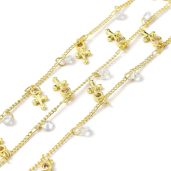 PandaHall Handmade Eco-friendly Brass Curb Chain, with Cross and Clear Cubic Zirconia Charms, Long-Lasting Plated, Soldered, with Spool... Price: $52.22 | PandaHall
