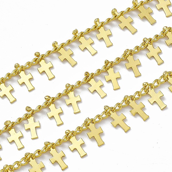 PandaHall Handmade Brass Curb Chains, with Cross Charms and Spool, Soldered, Long-Lasting Plated, Real 18K Gold Plated, Link: 3x2x1mm, Cross... Price: $28.78 | PandaHall