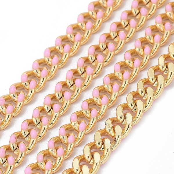 PandaHall Two Tone Handmade Brass Curb Chains, with Enamel and Spool, Unwelded, Long-Lasting Plated, Real 18K Gold Plated, Pink, 6x5x1.2mm... Price: $34.54 | PandaHall