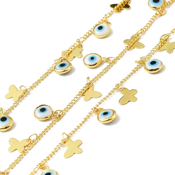 PandaHall Handmade Brass Curb Chains, with Butterfly & Glass Evil Eye Charm, Long-Lasting Plated, Soldered, with Spool, Golden, Cyan, Link... Price: $35.9 | PandaHall