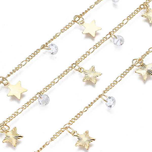 PandaHall Handmade Brass Figaro Chains, with Cubic Zirconia Charms and Spool, Soldered, Cadmium Free & Nickel Free & Lead Free, Star, Real... Price: $48.56 | PandaHall