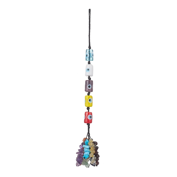 PandaHall Handmade Evil Eye Lampwork Pendant Decorations, Braided Nylon Thread and Gemstone Chip Tassel Hanging Ornaments, Column, 19cm... Price: $8.02 | PandaHall