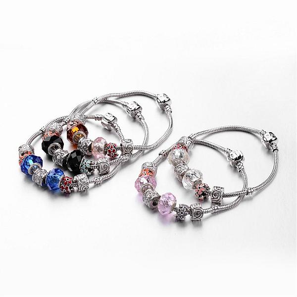 PandaHall Platinum Tone Brass European Style Beaded Bracelets, with Handmade Glass European Beads and Alloy Beads, Mixed Color, 200mm(7-7/8... Price: $8.31 | PandaHall