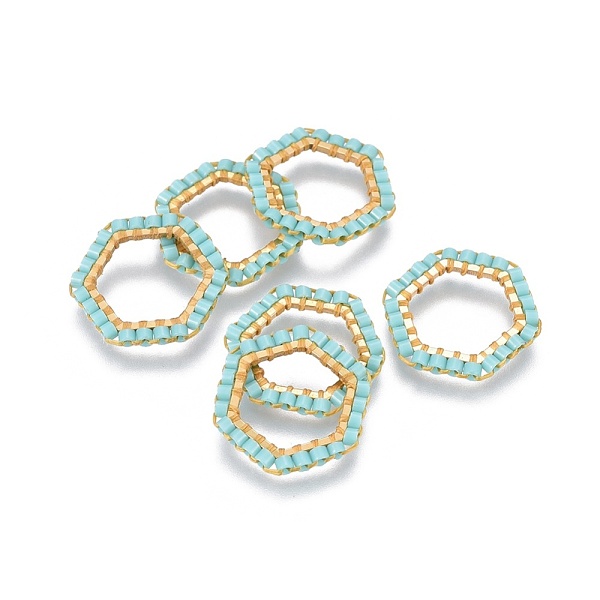 PandaHall MIYUKI & TOHO Handmade Japanese Seed Beads, with 304 Stainless Steel Link Rings, Loom Pattern, Hexagon, Golden, Pale Turquoise... Price: $2.51 | PandaHall
